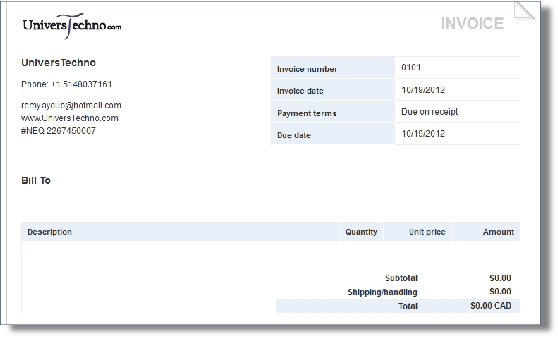 Afin d’éffectuer le paiement par carte de crédit ou par le service Paypal, vous recevrez par courriel une facture de ce type.
